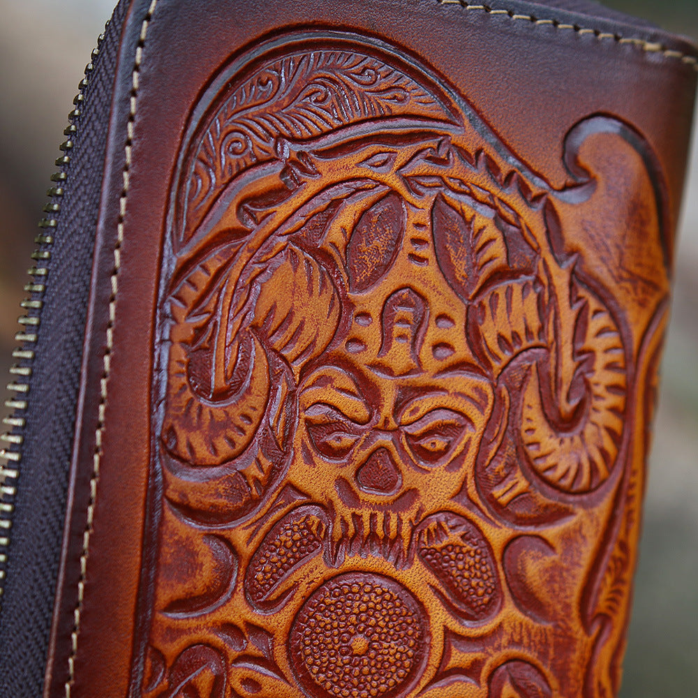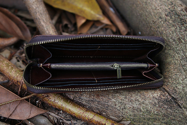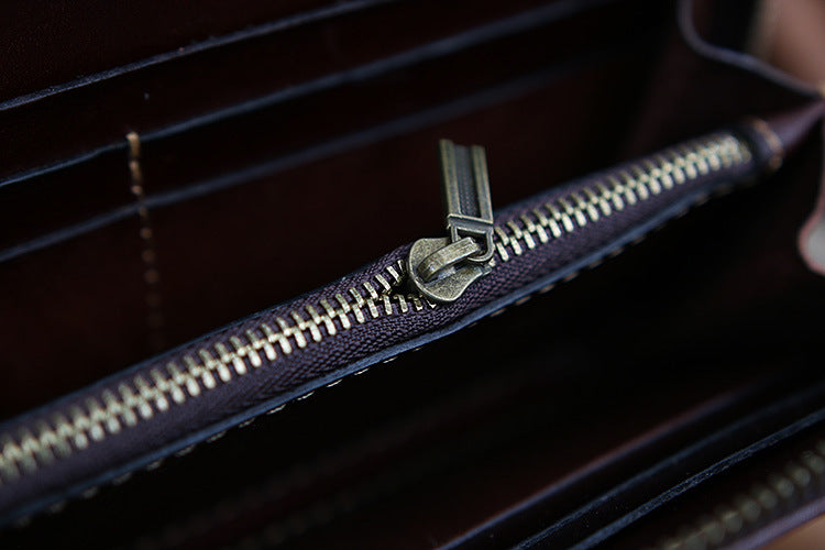 Style: Blue Wristlet Leather Wallets Handmade Zipper Long Wallets For Men