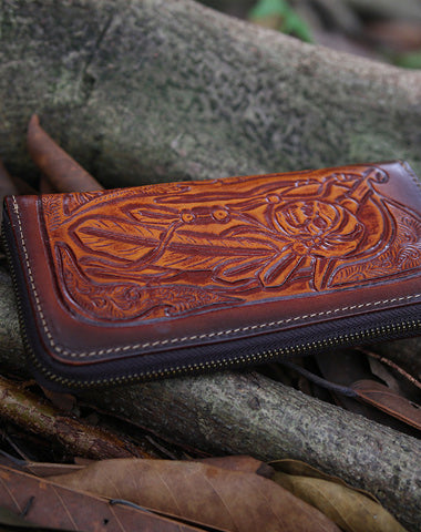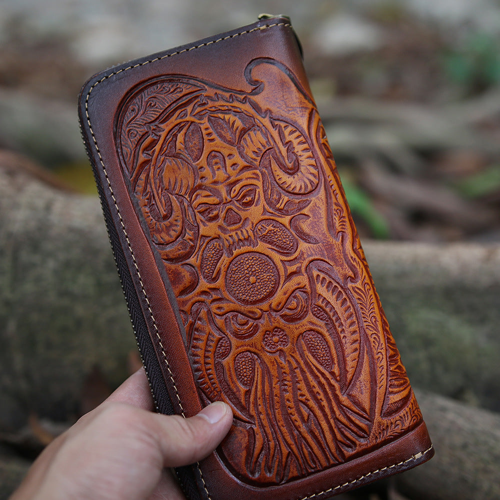 Design: Blue Wristlet Leather Wallets Handmade Zipper Long Wallets For Men