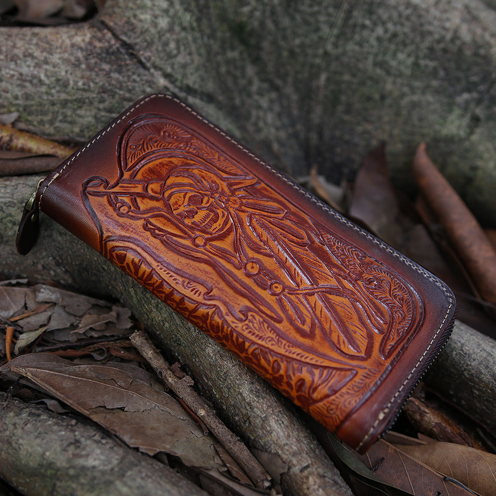 Style: Blue Wristlet Leather Wallets Handmade Zipper Long Wallets For Men