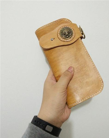 Style: Handmade Leather Mens Biker Chain Wallet Cool Long Biker Wallet with Chain