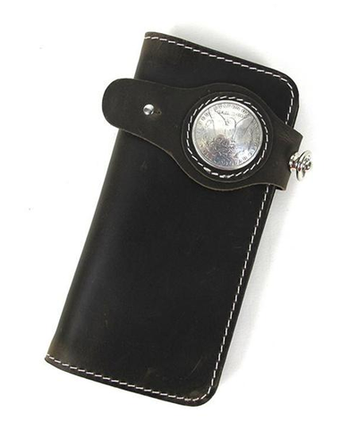 [On Sale] Handmade Mens Long Biker Wallet with Chain Cool Leather Biker Chain Wallets