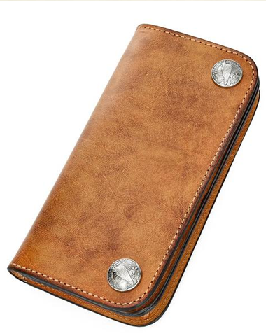 Style: Handmade Mens Long Biker Wallet with Chain Cool Zipper Leather Biker Chain Wallet