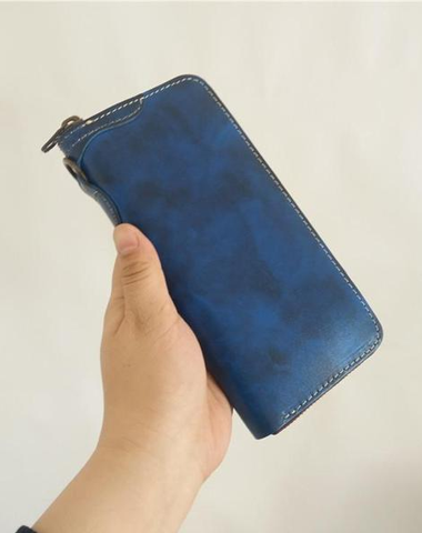 Style: Handmade Mens Long Biker Wallet with Chain Cool Zipper Leather Biker Chain Wallet