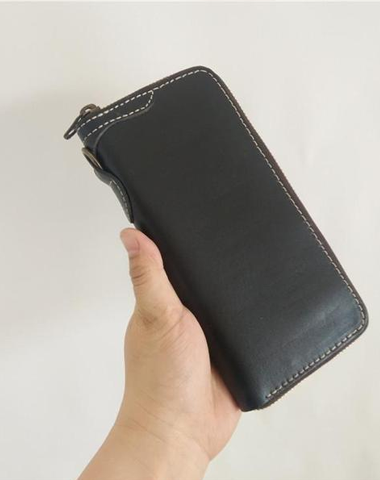 Style: Handmade Mens Long Biker Wallet with Chain Cool Zipper Leather Biker Chain Wallet