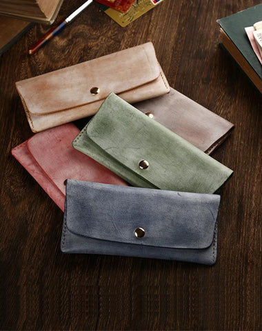 Style: Plain Handmade Mens Leather Blue Envelope Bag Long Wallet Phone Bag Green Clutch for Men