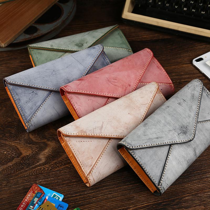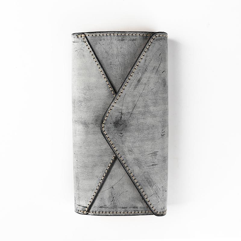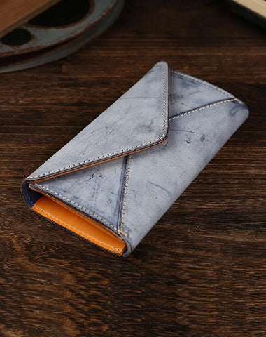Handmade Leather Mens Gray Envelope Long Wallet Blue Long Wallet Clutch Bag For Men
