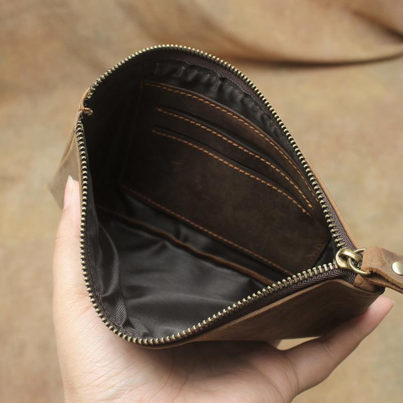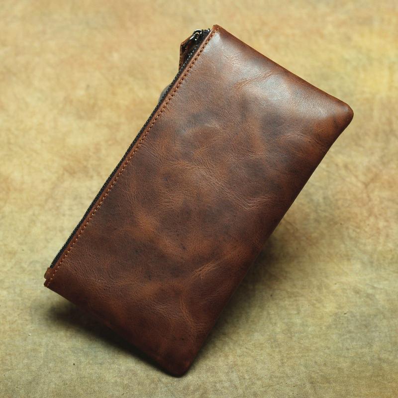 Design: Retro MENS LEATHER SLIM ZIPPER CLUTCH WALLET PURSE BAG CLUTCH BAG FOR MEN