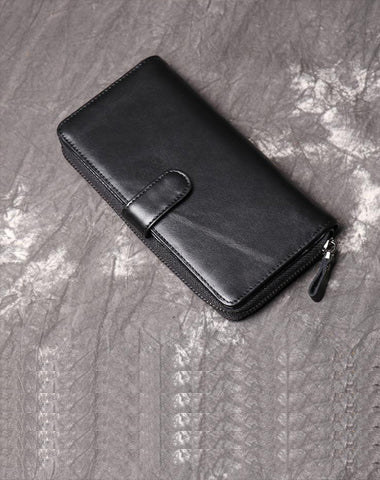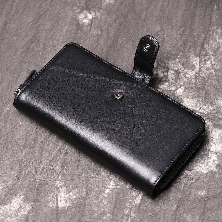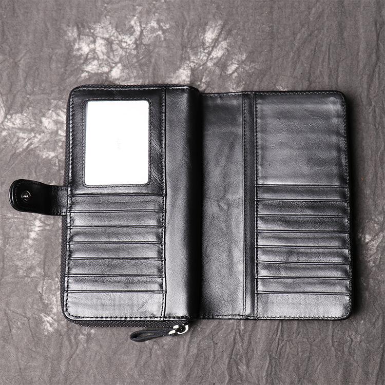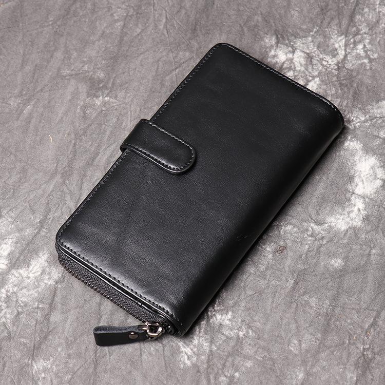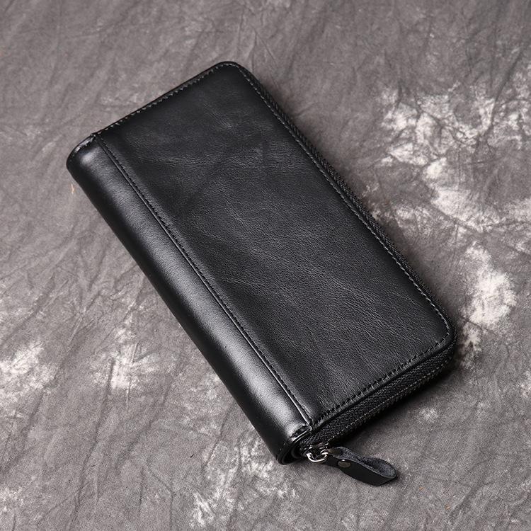 Style: Simple Black Leather Long Wallet for Men Bifold Long Wallet Card Wallet For Men