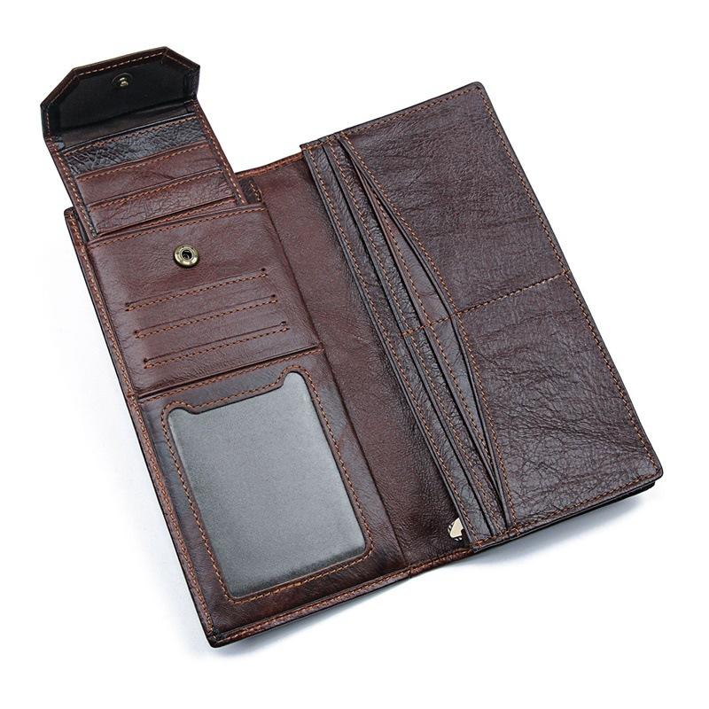 Design: Simple Brown Leather Long Wallet for Men Bifold Long Wallet Brown Multi-Card Wallet For Men
