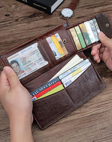Style: Simple Brown Leather Long Wallet for Men Bifold Long Wallet Brown Multi-Card Wallet For Men