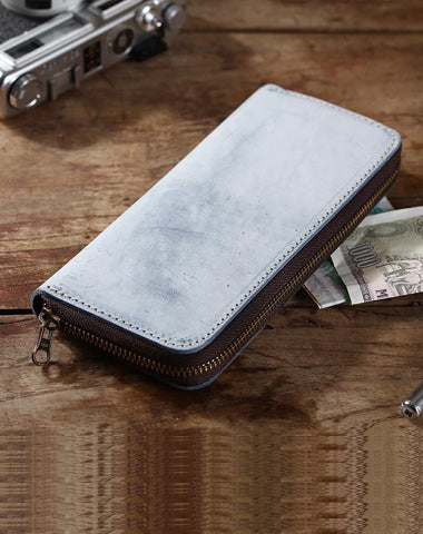 Style: Simple Handmade Mens Red Long Wallet Blue Bifold Card Wallet Clutch Wallet For Men