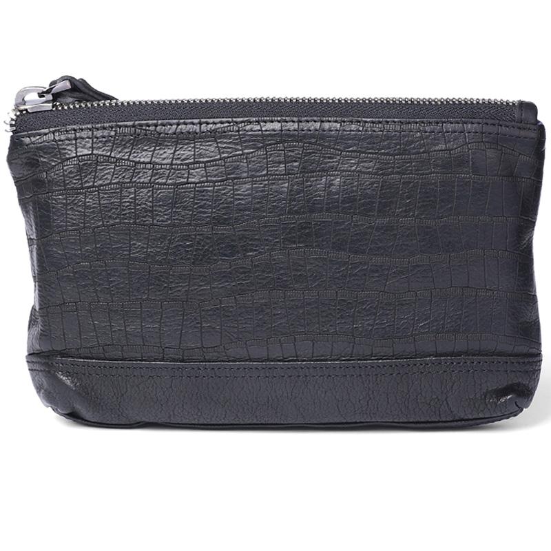 Design: Wrinkled Leather Mens Cool Long Leather Black Wallet Zipper Clutch Wristlet Wallet for Men