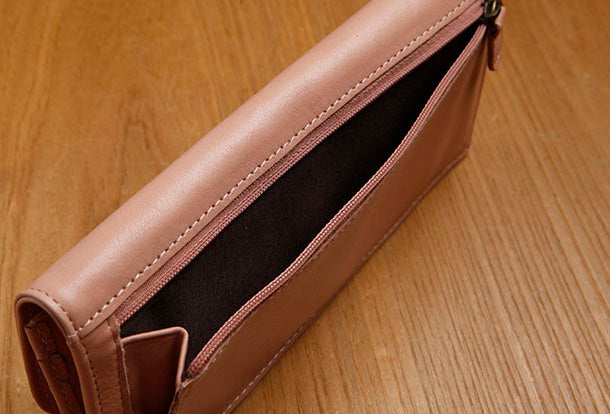 Style: Genuine Leather Cute Long Slim Wallet Bifold Clutch Cards Wallet Purse For Women Girl