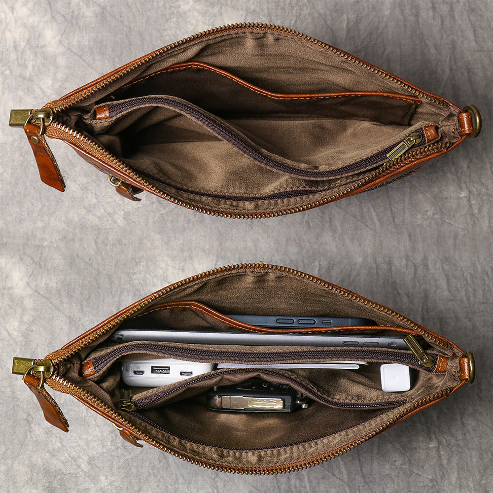 Engineered for organization and ease, this refined Men's Leather Clutch Purse features two main compartments, two secure zippered pockets, and a convenient side slot, ensuring everything from your tablet to your wallet has a dedicated place. The inclusion of a detachable hand strap provides flexible carrying options, allowing you to carry it as a sleek clutch or a secure hand-held folio. Whether you’re heading to a meeting, catching a flight, or navigating your daily routine, this bag is built to keep you organized in style.