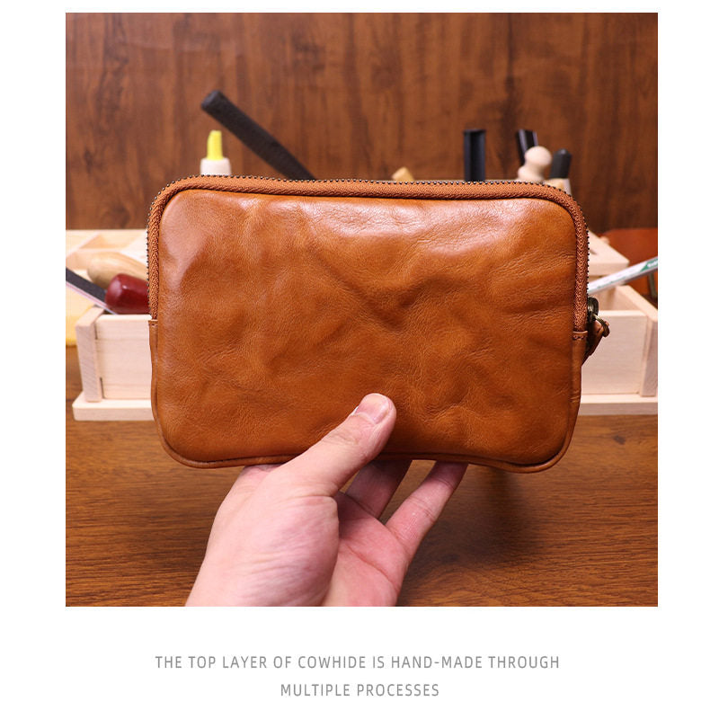 Introduce a touch of effortless style and practical minimalism with our Wristlet Clutch Wallet, a uniquely textured accessory that blends vintage character with everyday functionality. Expertly crafted from premium full-grain leather with a distinctive wrinkled finish, this compact Leather Wallet Clutch measures 19cm x 12cm x 2cm, offering a slim, pocket-friendly profile that’s perfect for on-the-go essentials. Available in four versatile shades—Classic Brown, Dark Brown, Olive Green, and Black—this sophisticated Phone Clutch Wallet is designed for those who appreciate refined simplicity and tactile elegance.