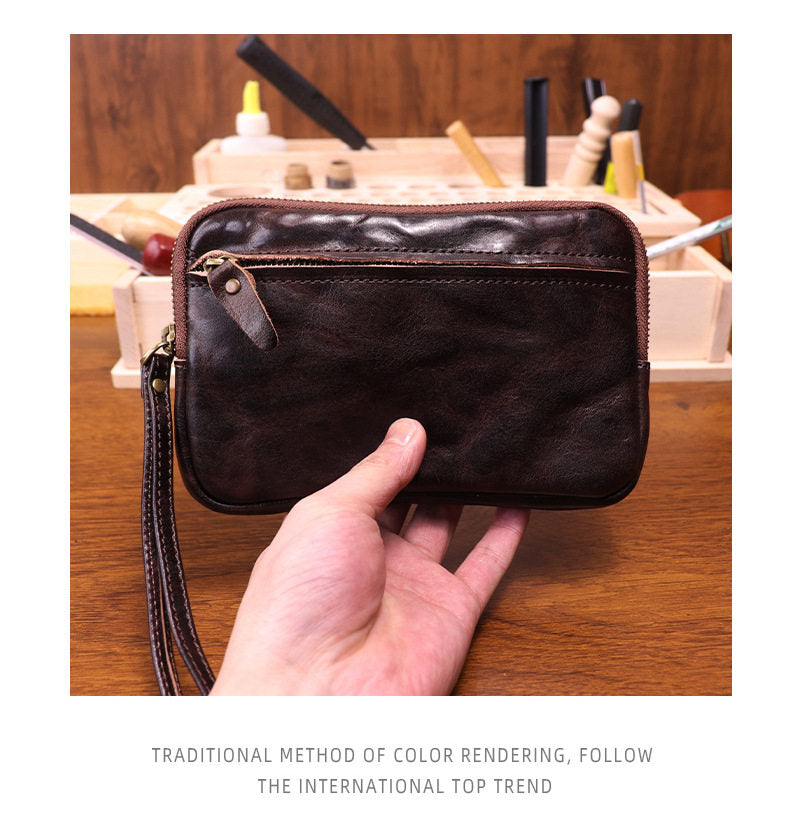 Design: Leather Wristlet Clutch Wallet for Men Leather Phone Clutch Wallet