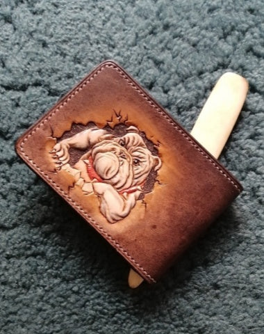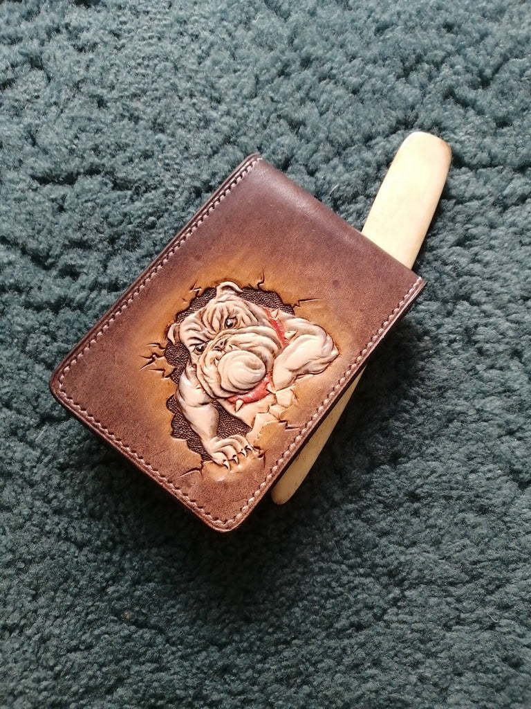 Design: Tooled Leather Wallet Card Wallet with ID Window Bulldog Leather Wallet ID Holder Wallet Mens Wallet with ID Window Bulldog Wallet