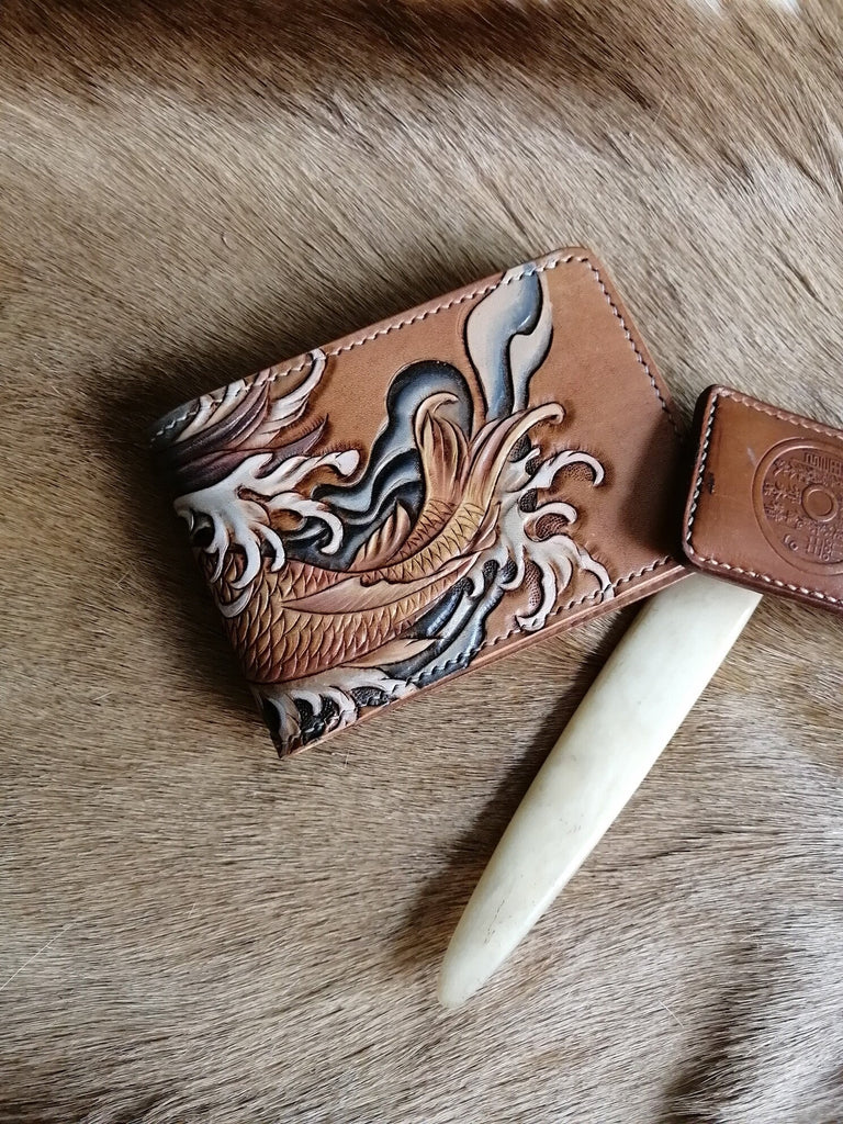 Tooled Leather Wallet Card Wallet with ID Window Carp Leather Wallet ID Holder Wallet Mens Wallet with ID Window Carp Wallet