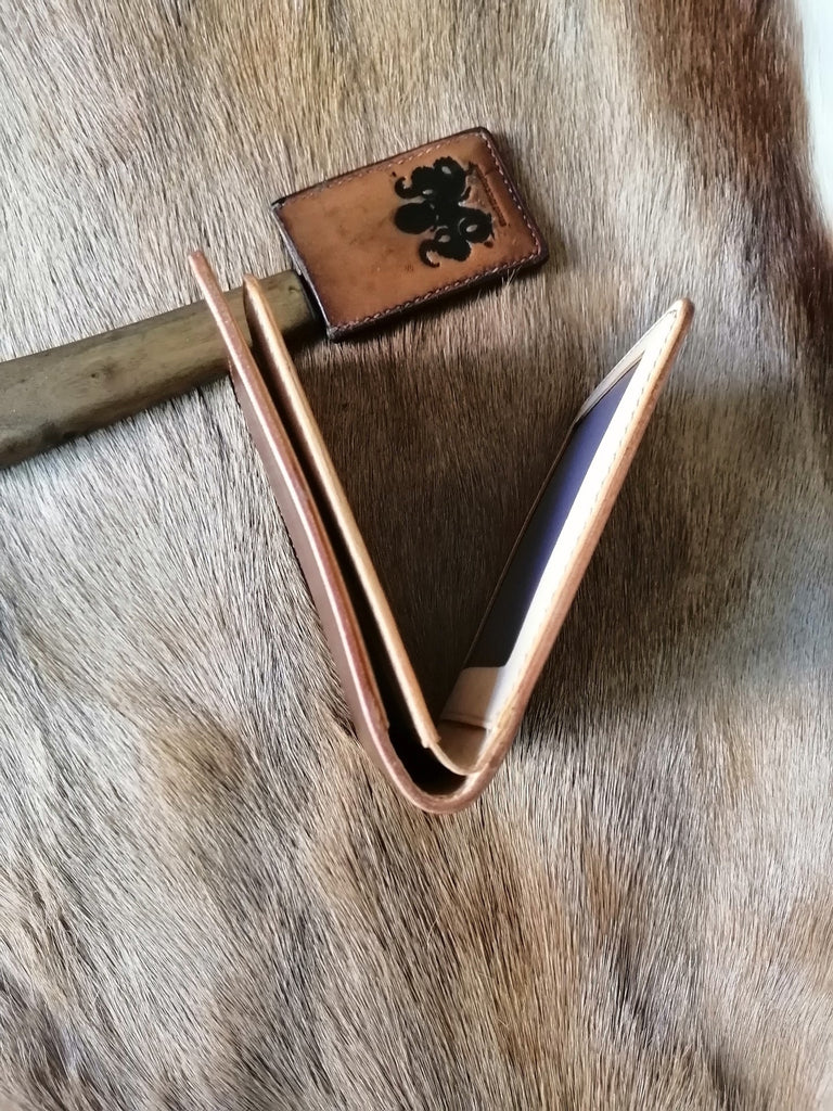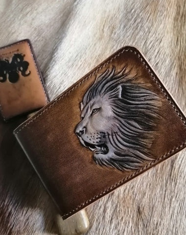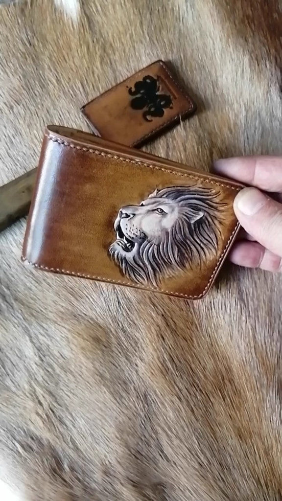 Tooled Leather Wallet Card Wallet with ID Window Lion Leather Wallet ID Holder Wallet Mens Wallet with ID Window Lion Wallet