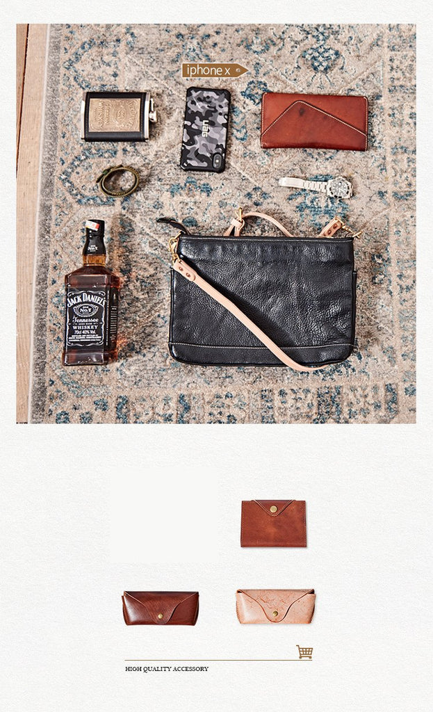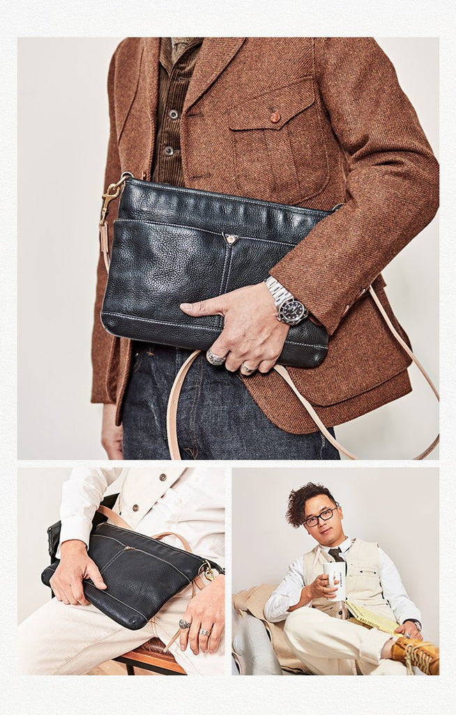 Style: Casual Black Leather Mens Briefcase 10 inches Messenger Bag Horizontal Shoulder Bag For Men