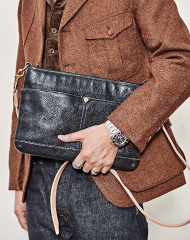 Design: Casual Black Leather Mens Briefcase 10 inches Messenger Bag Horizontal Shoulder Bag For Men