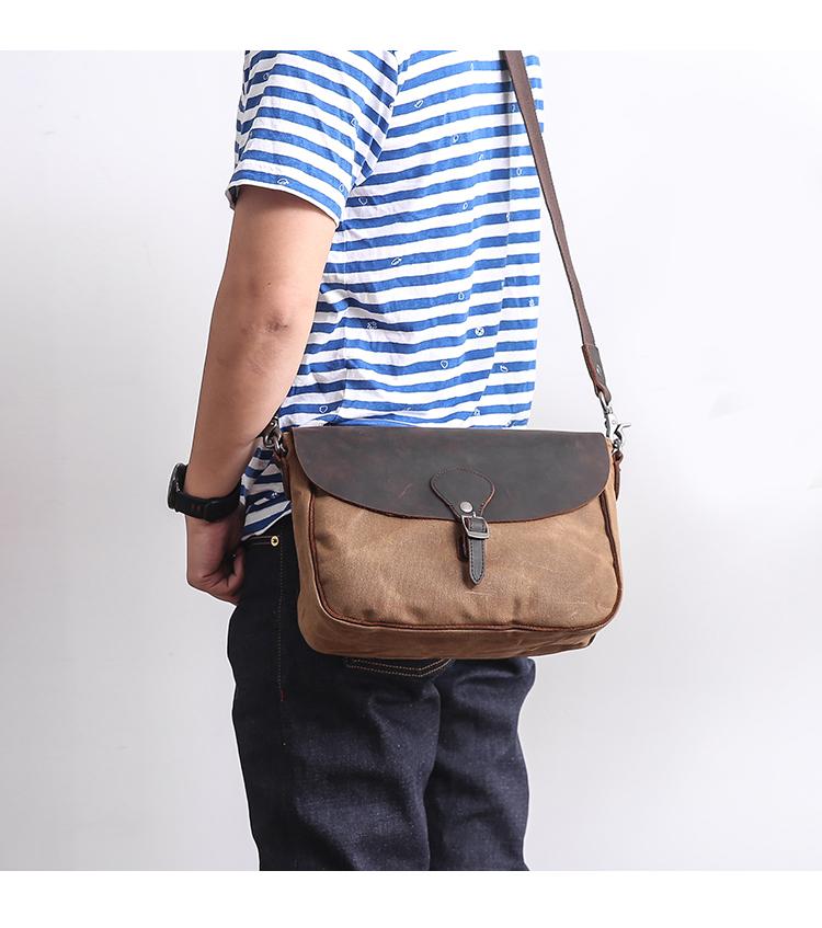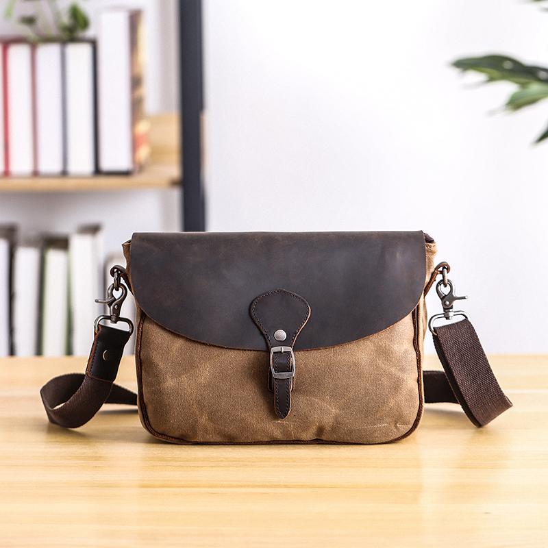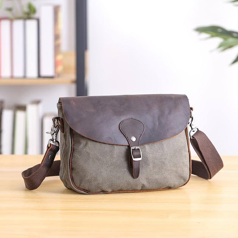 Design: Casual Canvas Leather Mens Womens Side Bag Shoulder Bag Messenger Bag Backpack for Men