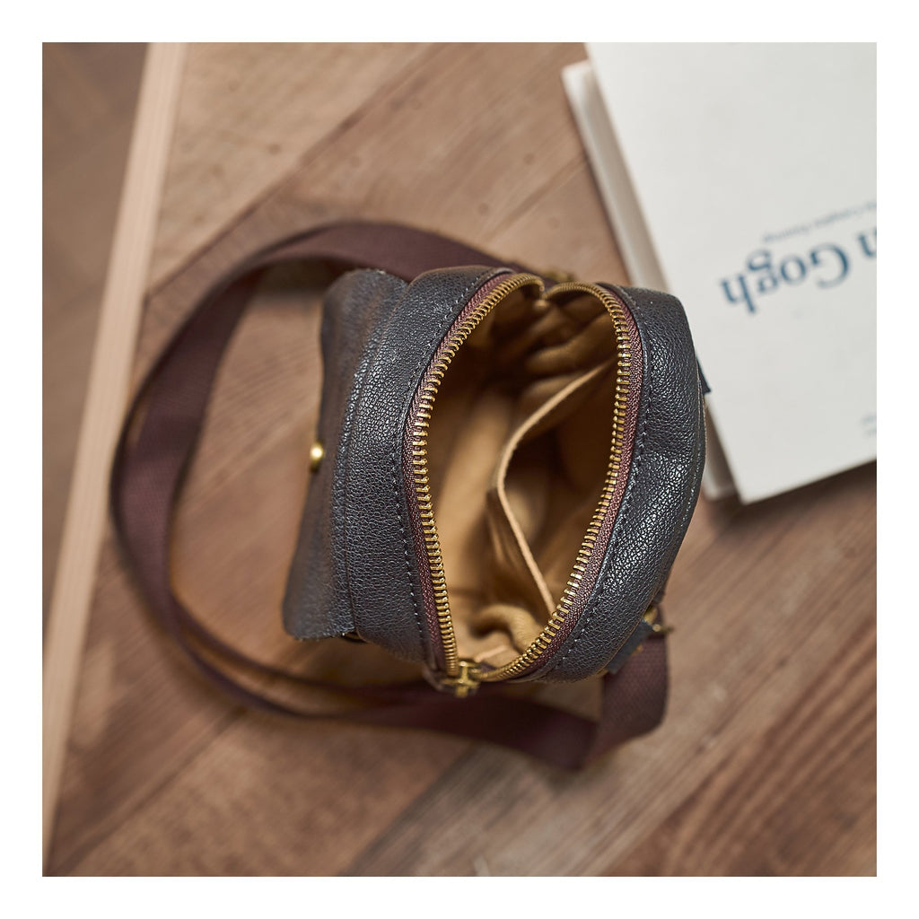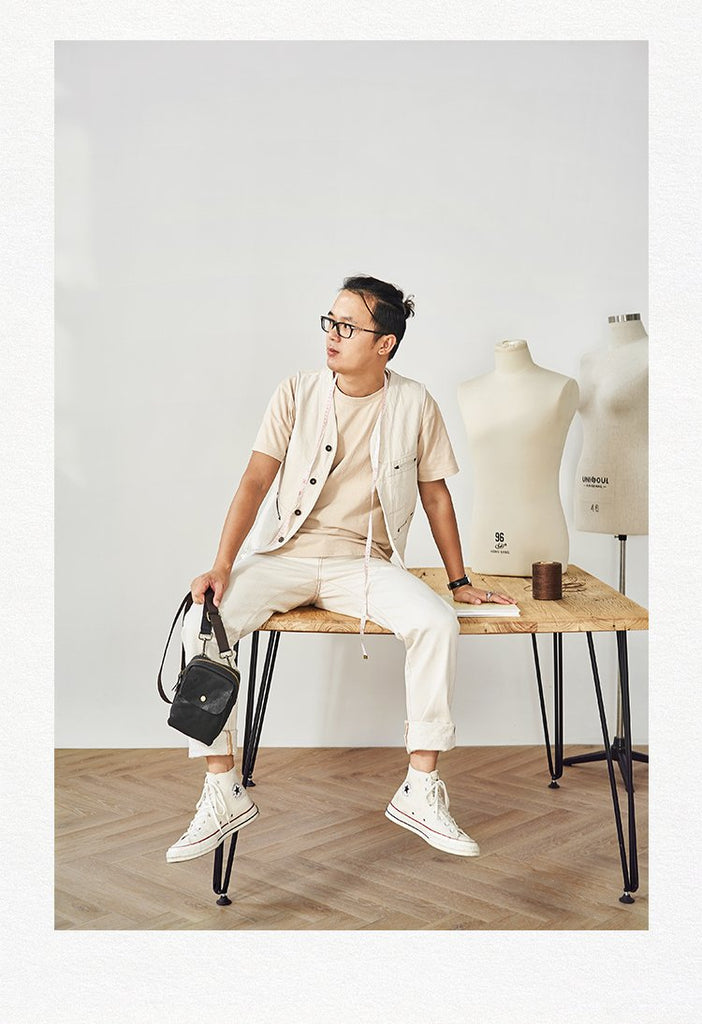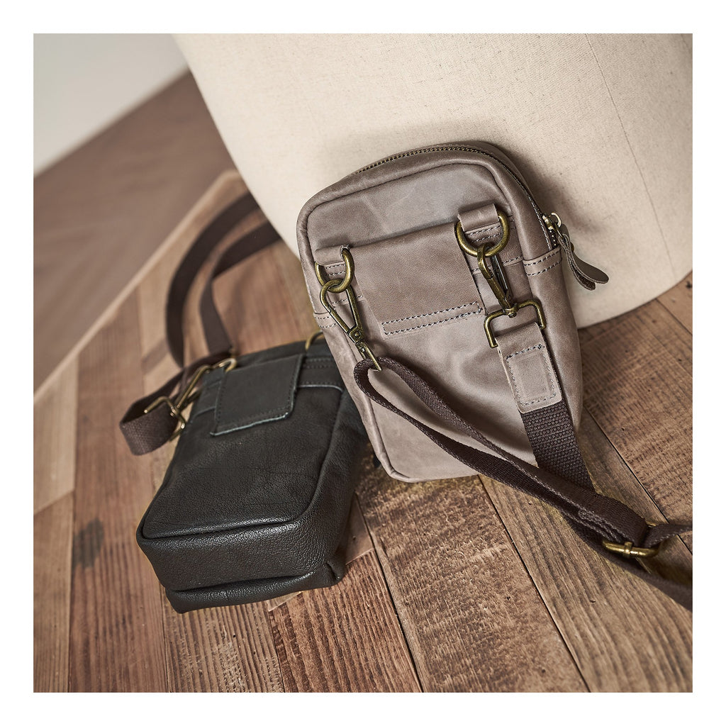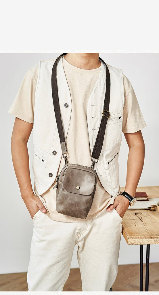 Design: Cool Black Leather Mens Small Messenger Bag Courier Bag Chest Bag Phone Side Bag for men