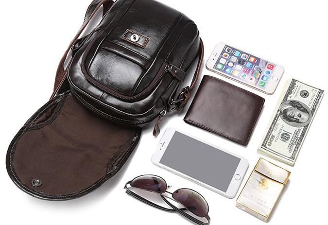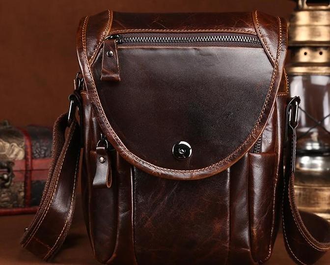 Design: Cool Coffee Small Mens Leather Side Bag Messenger Bag Shoulder Bag for Men