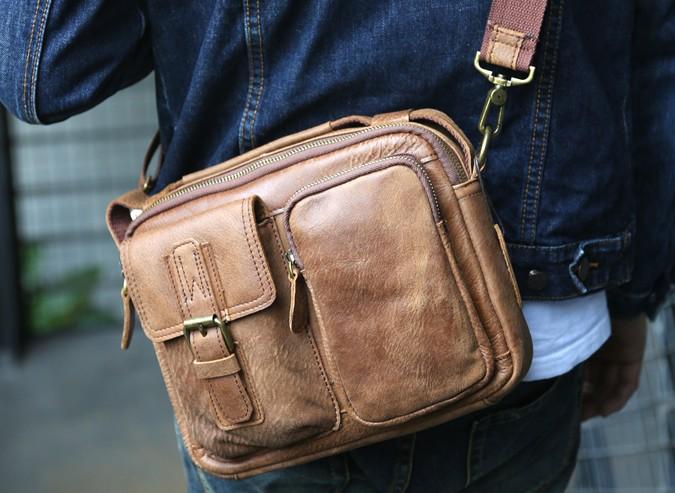 Design: Cool Leather Mens Small Messengers Bag Shoulder Bags for Men