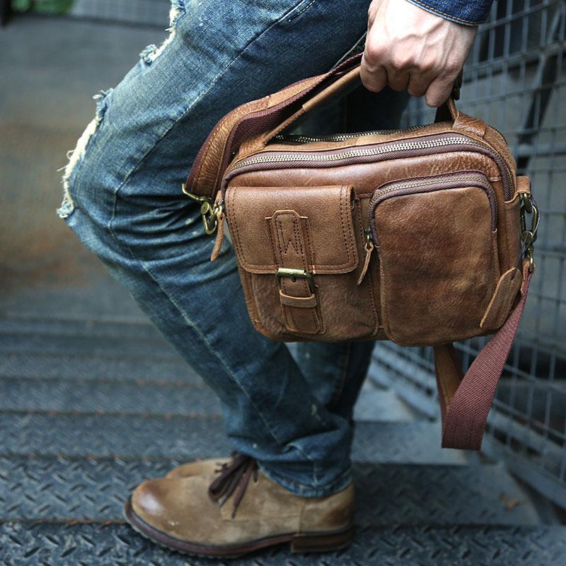 Style: Cool Leather Mens Small Messengers Bag Shoulder Bags for Men