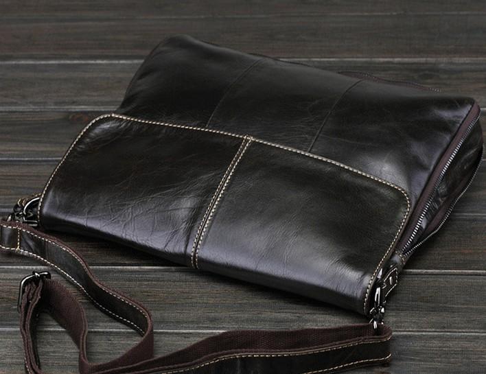 Design: Cool Black Small Leather Mens Messenger Bag Shoulder Bag for Men
