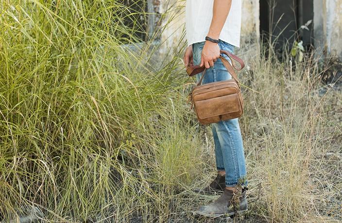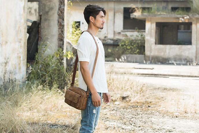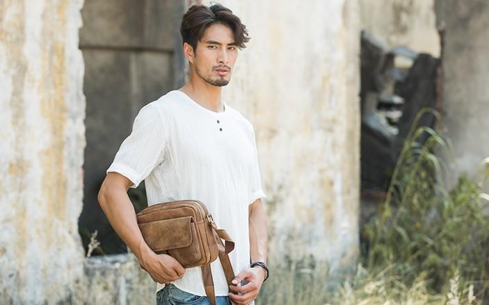 Design: Cool Leather Mens Small Shoulder Bags Messengers Bag for Men
