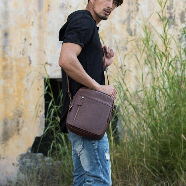 Design: Red Brown Cool Leather Mens 10 inches Vertical Shoulder Bag Casual Messenger Bags Side Bag for Men