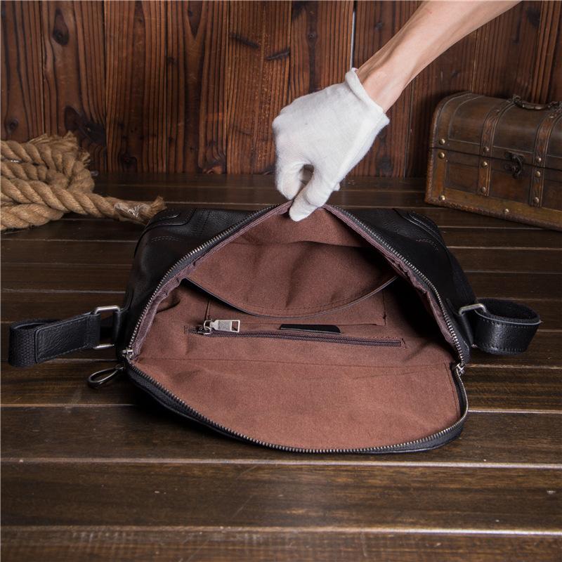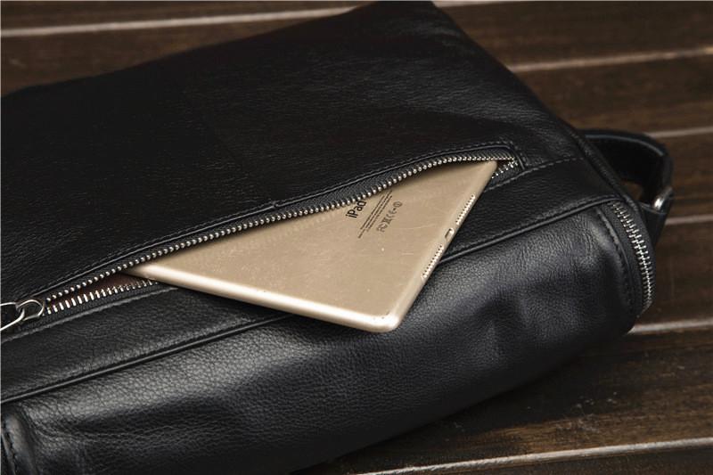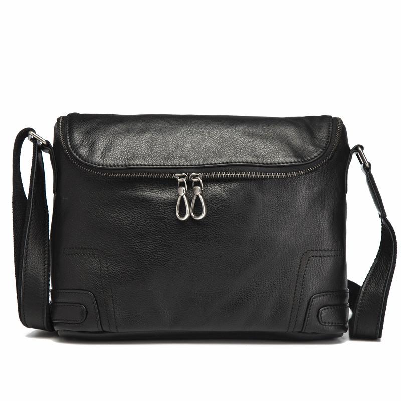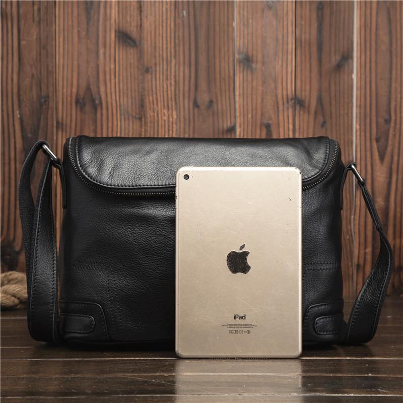 Design: Cool Black Leather Men's Messenger Bag Black Side Bag Courier Bag For MenOverview: