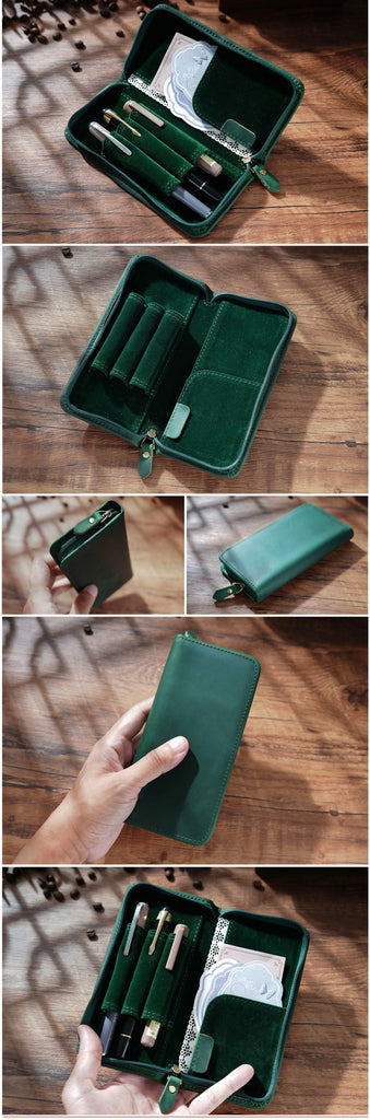 Leather Fountain Pen Case | Luxury Leather Pen Organizer with Velvet Lining