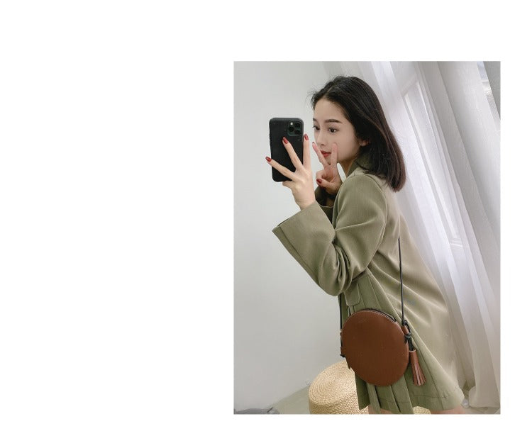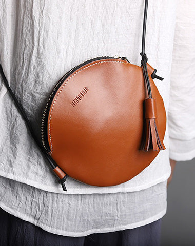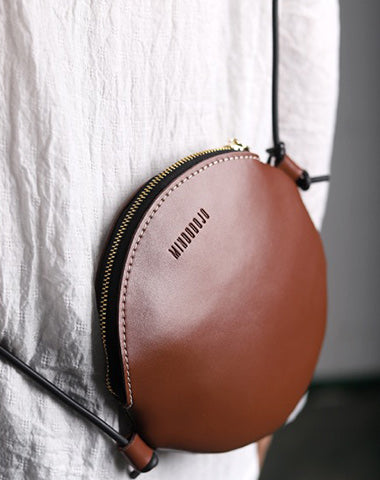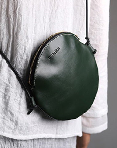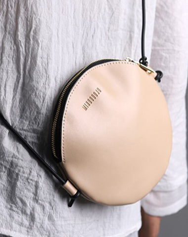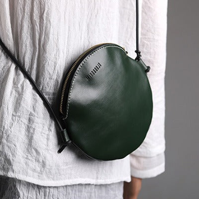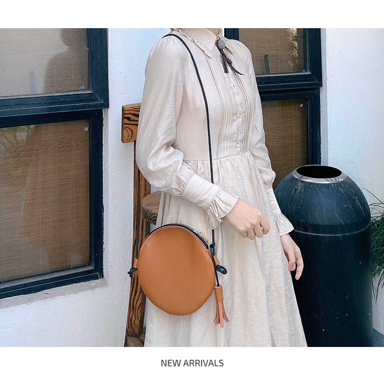 Cute Round LEATHER Slim Side Bag Black WOMEN Circle SHOULDER BAG Small Crossbody Purse FOR WOMEN