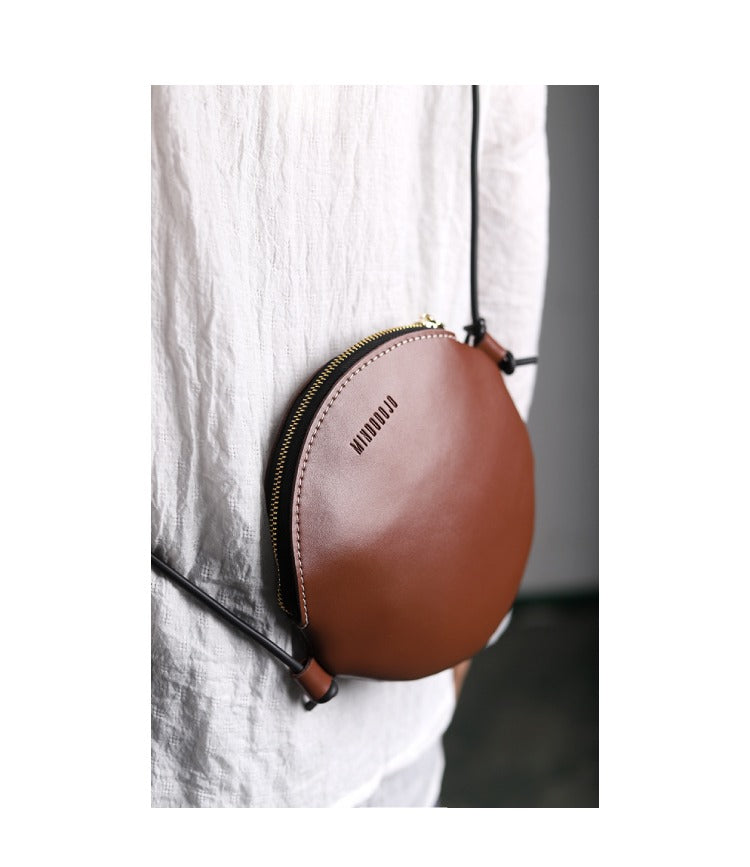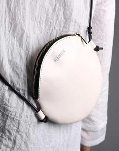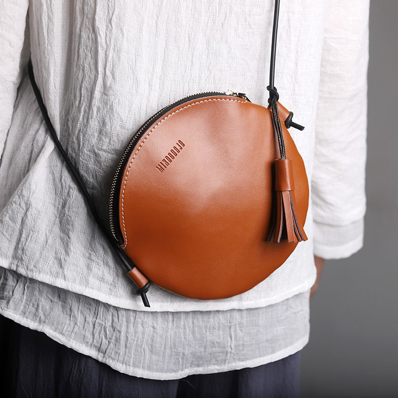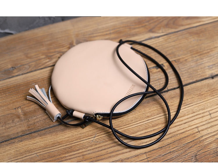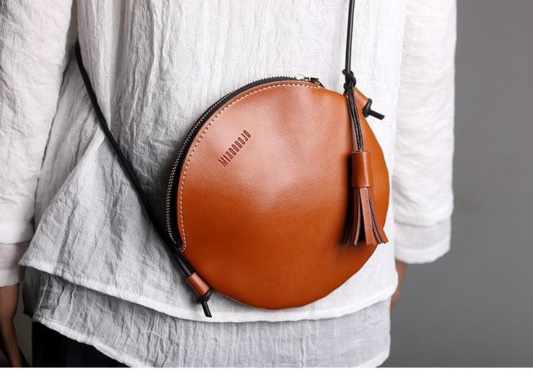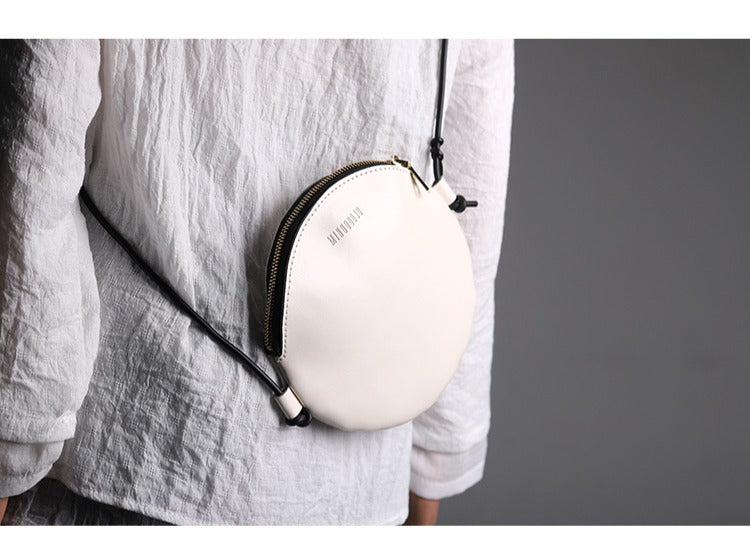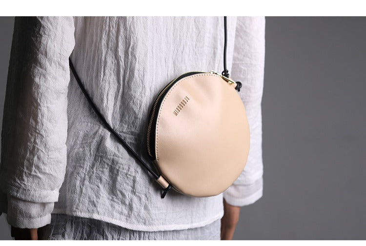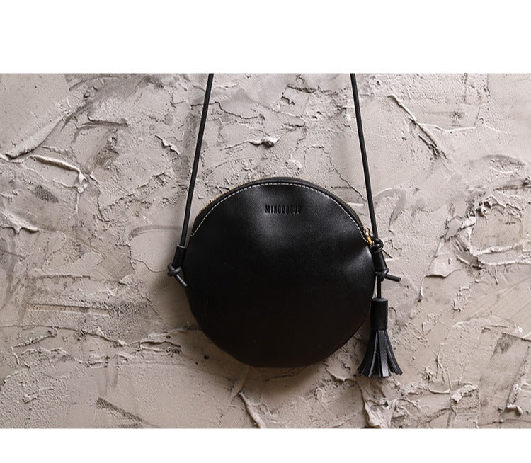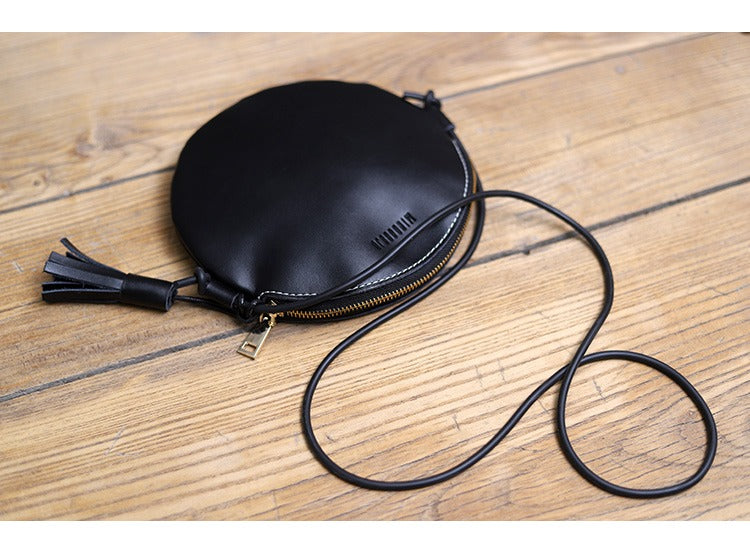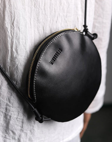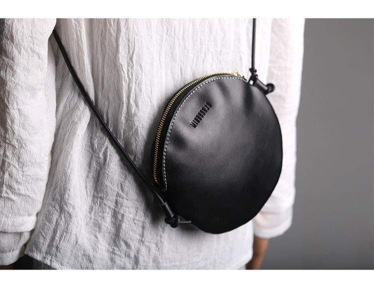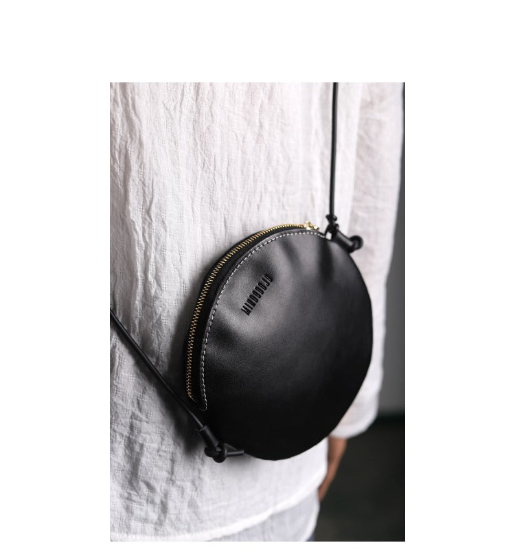 Design: Cute Round LEATHER Slim Side Bag Black WOMEN Circle SHOULDER BAG Small Crossbody Purse FOR WOMEN