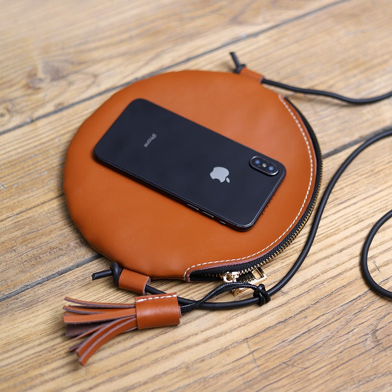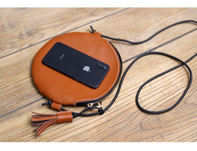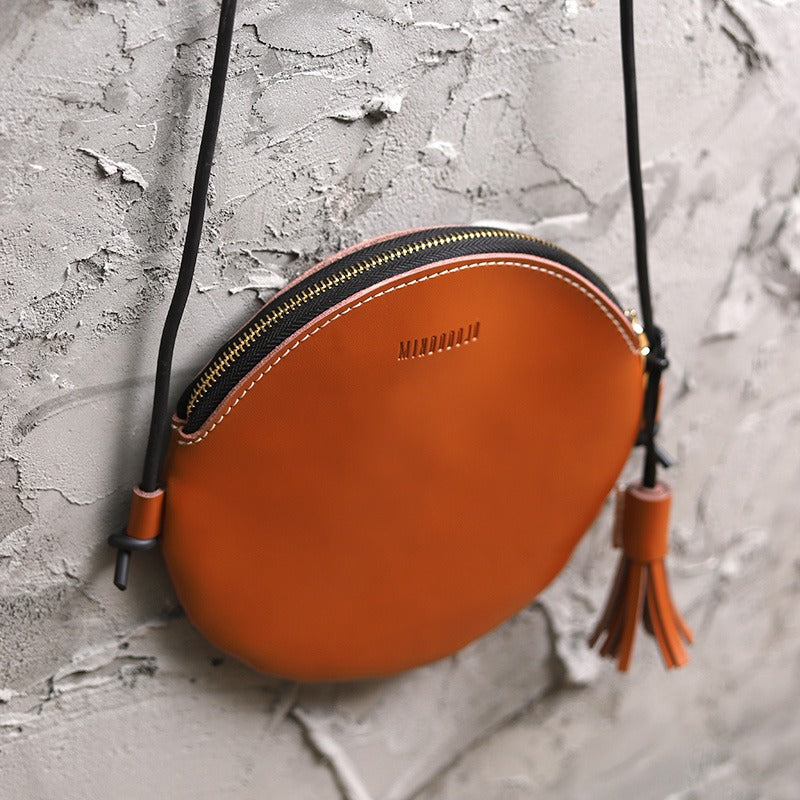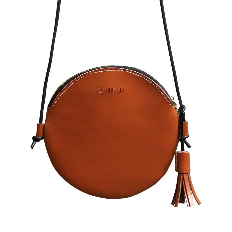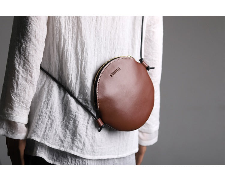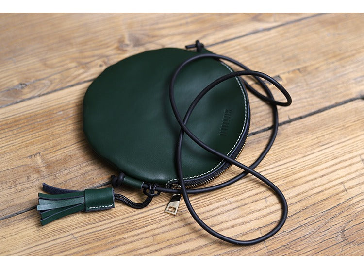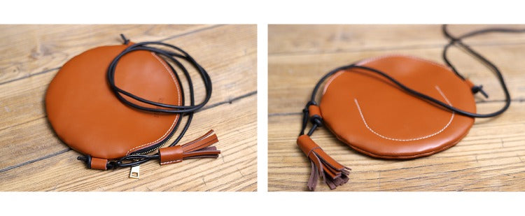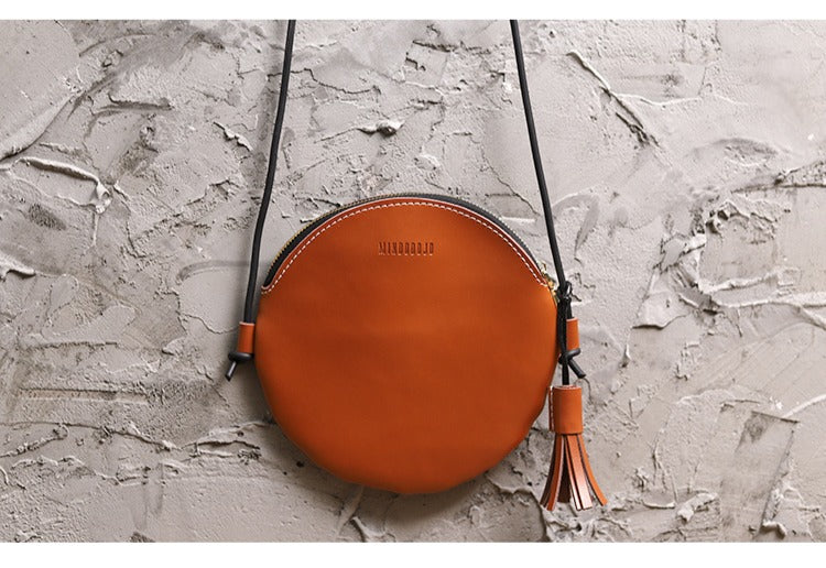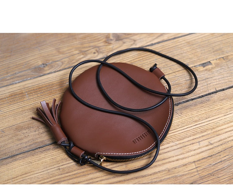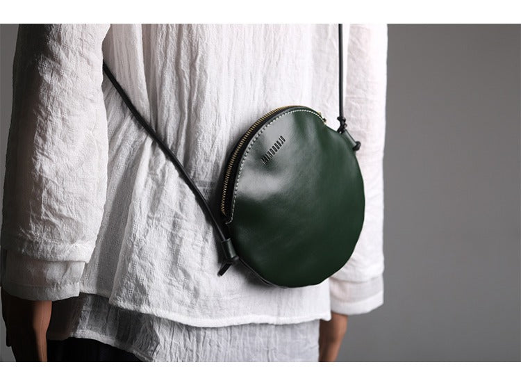 Design: Cute Round LEATHER Slim Side Bag Black WOMEN Circle SHOULDER BAG Small Crossbody Purse FOR WOMEN