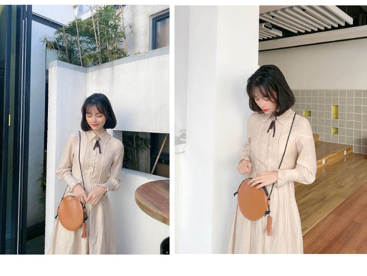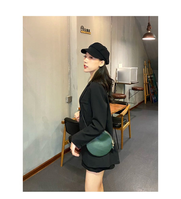 Style: Cute Round LEATHER Slim Side Bag Black WOMEN Circle SHOULDER BAG Small Crossbody Purse FOR WOMEN