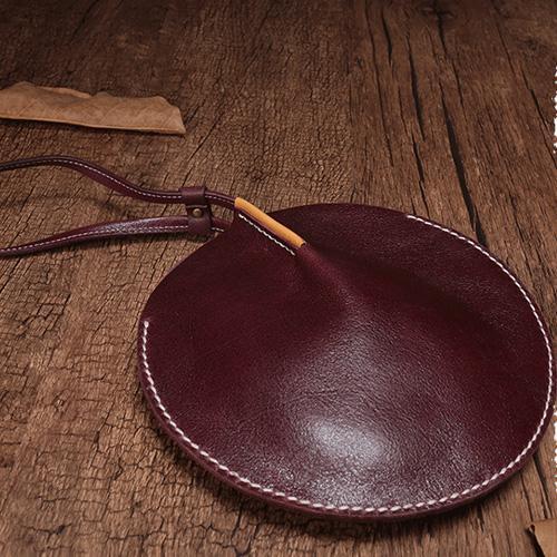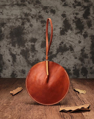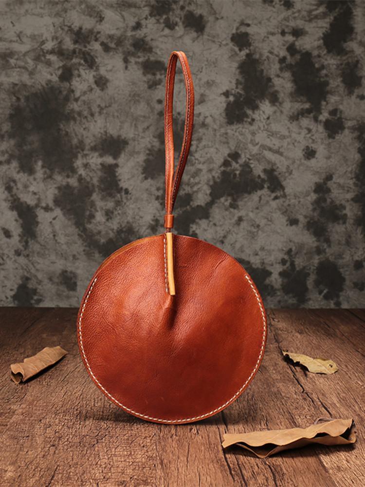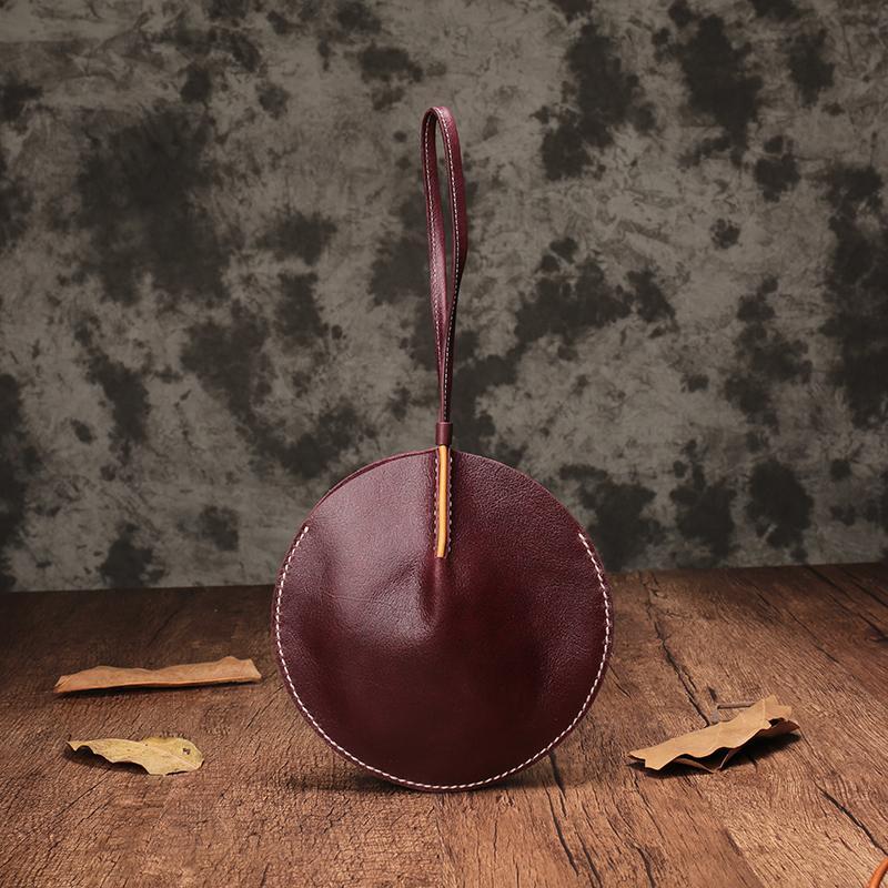 Style: Handmade Leather Circle Round Clutch Bags Purses