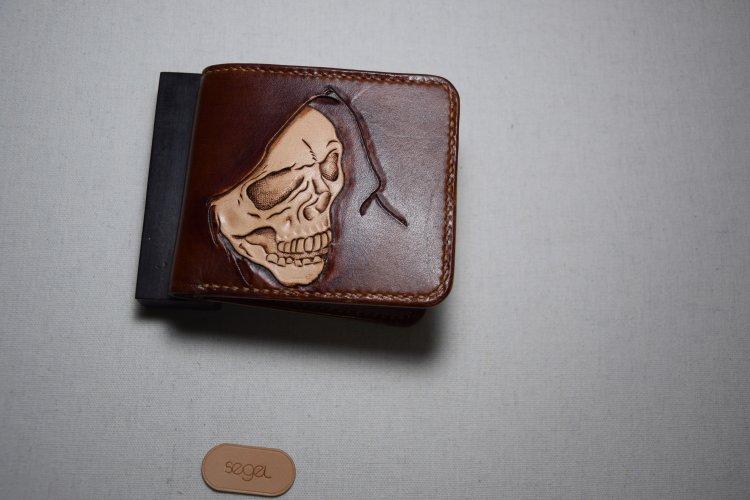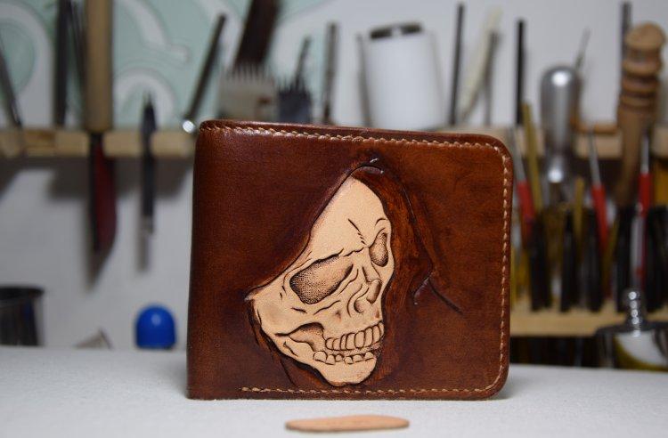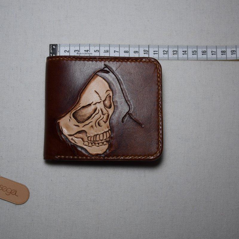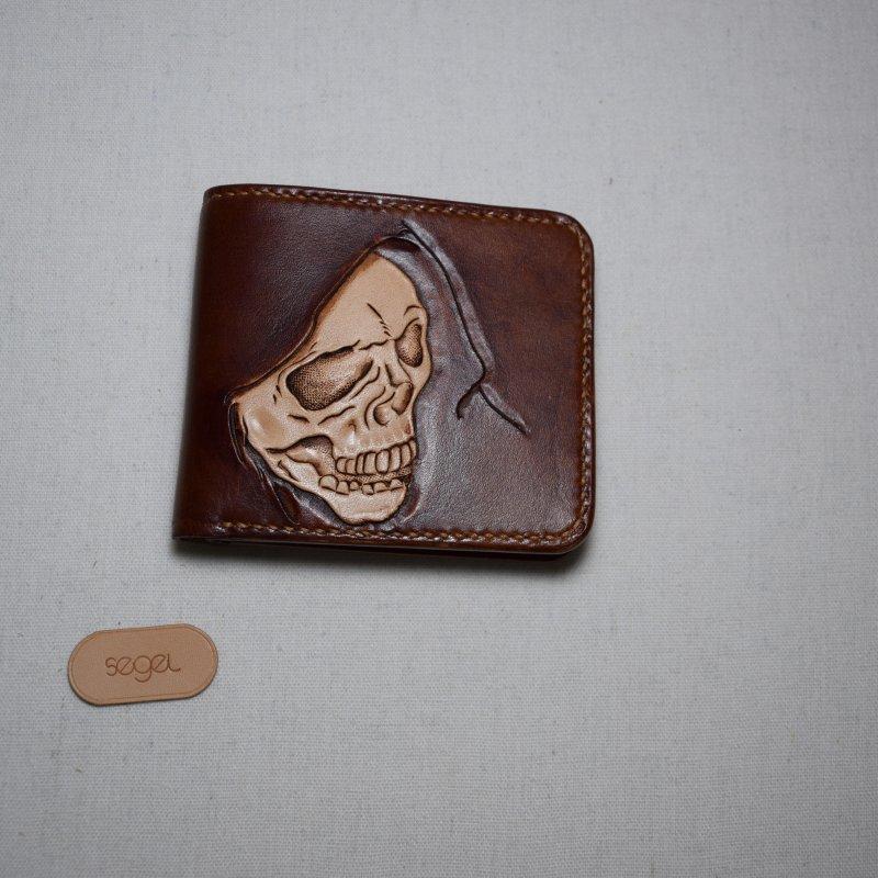 Design: Handmade Leather Skull Death Tooled Mens billfold Wallet Cool Leather Wallet Slim Wallet for Men