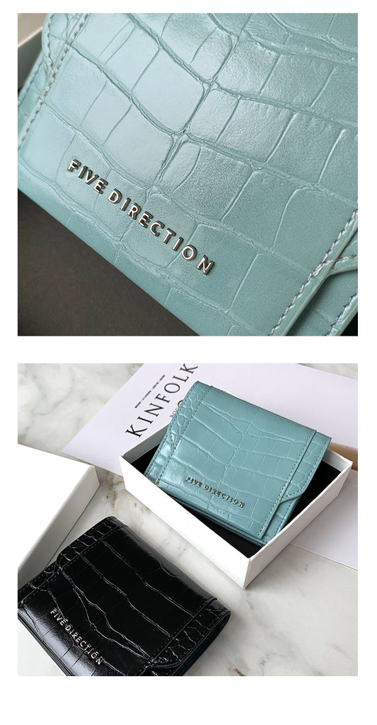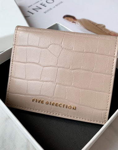 Style: Cute Women Beige Vegan Leather Small Billfold Wallet Card Holder Crocodile Pattern Slim Card Wallets For Women