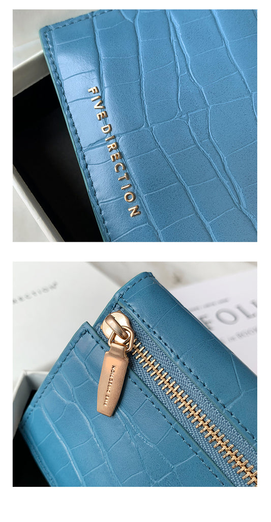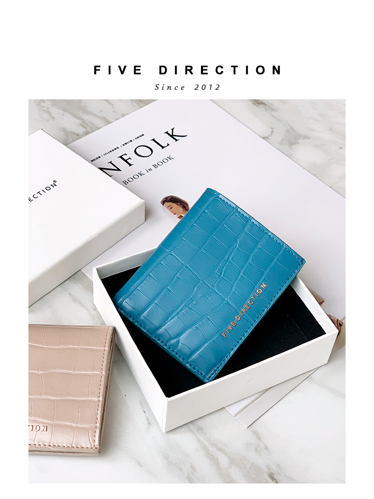 Design: Cute Women Beige Vegan Leather Small Billfold Wallet Card Holder Crocodile Pattern Slim Card Wallets For Women