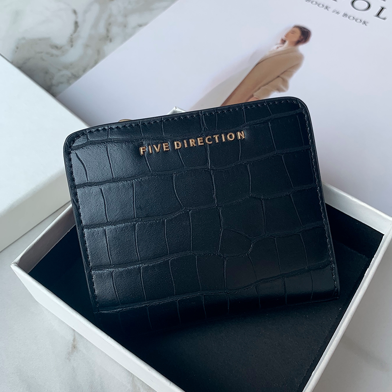 Design: Cute Women Black Vegan Leather Small Wallet Crocodile Pattern Billfold Small Wallets For Women