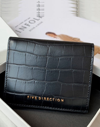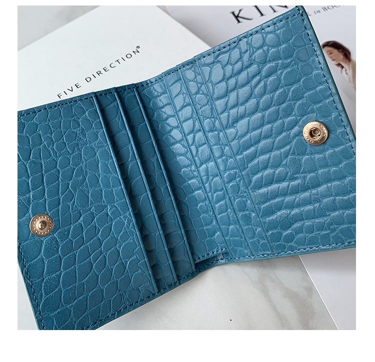 Design: Cute Women Blue Vegan Leather Small Billfold Wallet Card Holder Crocodile Pattern Slim Card Wallets For Women