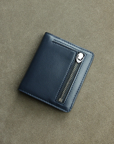 Design: Cute Women Dark Blue Leather Small Bifold Wallet Billfold Wallet with Coin Pocket For Women