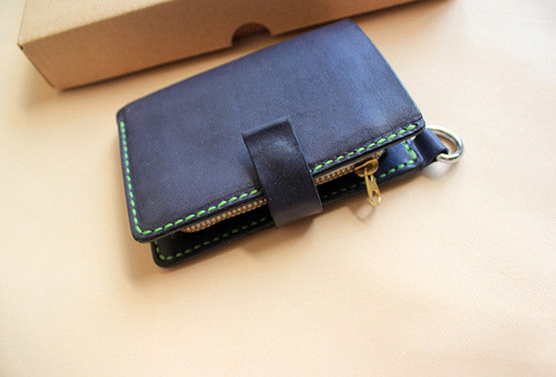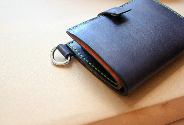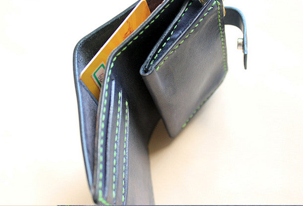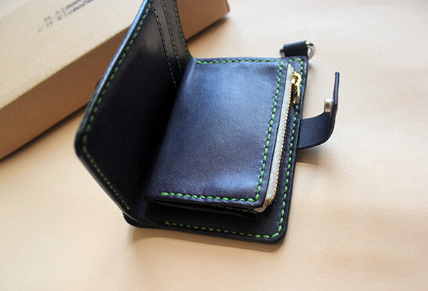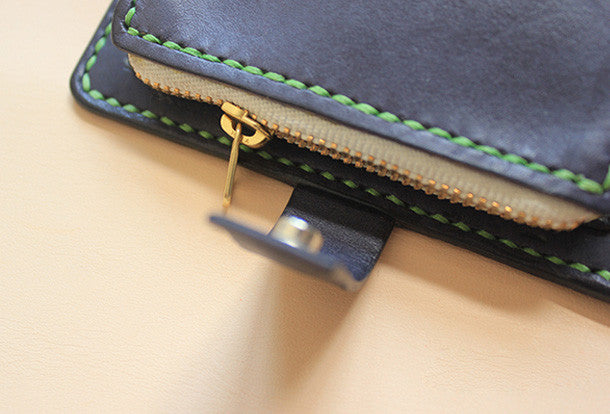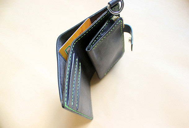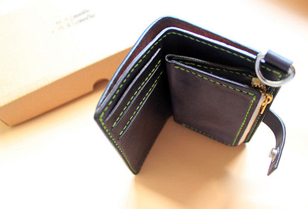 This is Handmade black ?pretty cute fashion hand dyed leather billfold ID card photo holder bifold wallet for women/lady girl gift for her.The wallet is biifold,color is black ?,There are ?1 full size bill slots,3 ID slots and 1 zip pouch~Hand-made in the traditional method with punched holes and saddle stitching by hand.