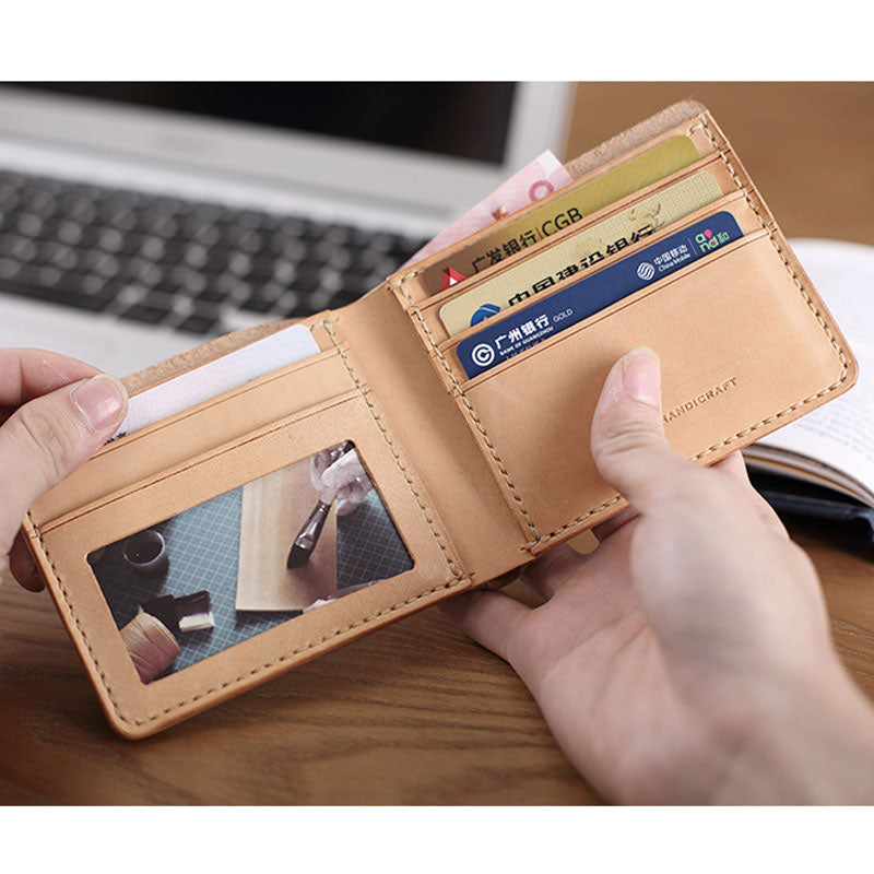 Style: Handmade Cool Leather Mens Bifold Small Wallets billfold Wallet for Men