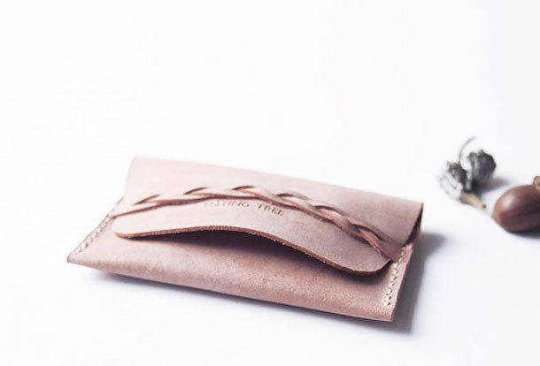 Design: Handmade leather braided personalized custom billfold coin change wallet card wallet for women