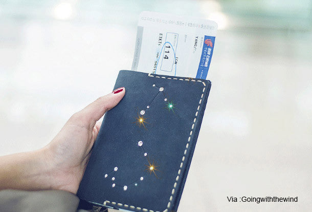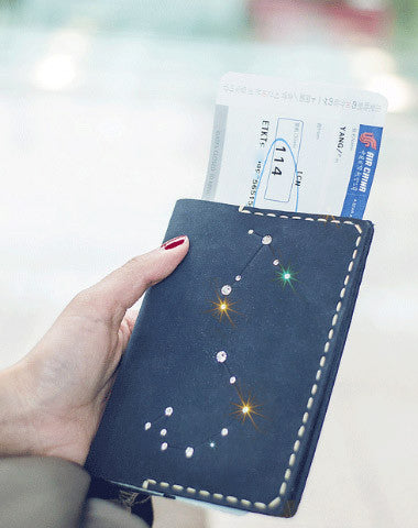 Design:?Vintage Leather Women?constellation Passport?Wallet